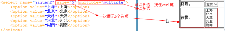 下拉菜单和下拉列表的标签是一样的,他们的区别下拉列表一次可以选择多个选项