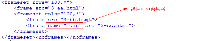 例题:实现在一个框架中点击,目标页面在另一个框架中出现
