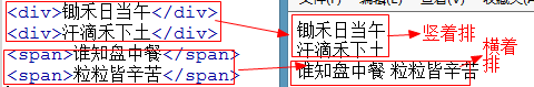 这两个标签叫块标记,这两个标记中用来放内容。他们的区别: