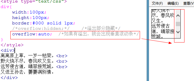 overflow:auto; /*如果有溢出,就会出现垂直滚动条*/