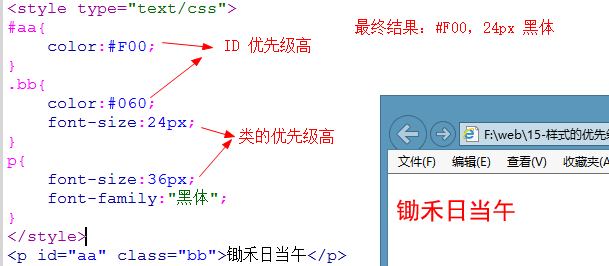 1. ID选择器>CLASS选择器>HTML标签选择器