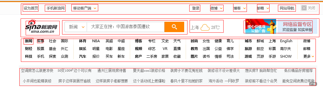 页面的所有元素都放在盒子(容器标记)中,无拼版不盒子