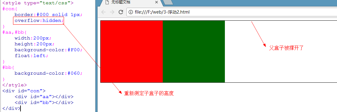 脚下留心:盒子里面的子盒子浮动起来,子盒子就脱离标准流了,这时父盒子就不能精确的检测到它内部的内容到底有多高,父盒子会变成一根线;我们可以给父盒子加一个overflow:hidden属性让它精确检测一下内部的高度。盒子就会自动撑开了。