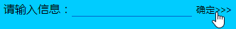 <div>请输入信息:<input type=”text” name=”username” /><input type=”button” value=”确定>>>” /></div>