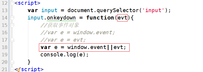 事件对象就是描述当前事件的具体的情况的对象。这个对象根据事件的不同,内容可能会发生细微的变化,比如键盘事件,事件对象就会包括keyCode,比如单击事件,事件对象就会包含点击的坐标。