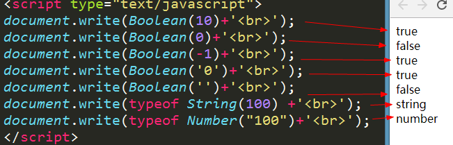 2、字符串和布尔值转换规律:空字符串为false,非空字符串为true