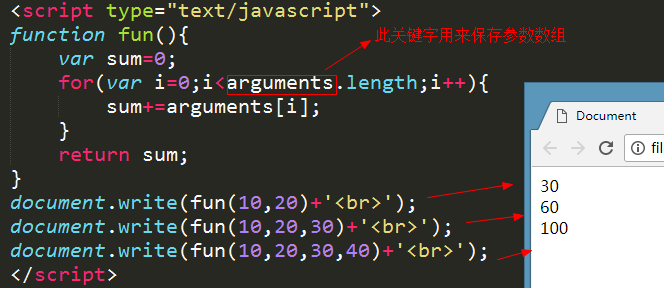 通过arguments关键字保存传递的参数数组