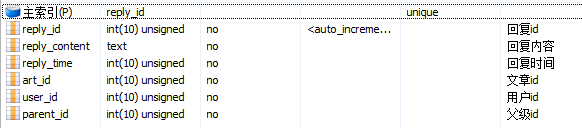 reply_id int unsigned auto_increment primary key comment ‘回复id’,