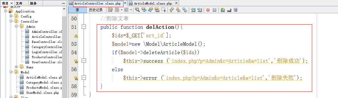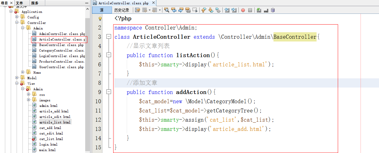 控制器(在Controller\Admin文件夹下创建ArticleController.class.php)