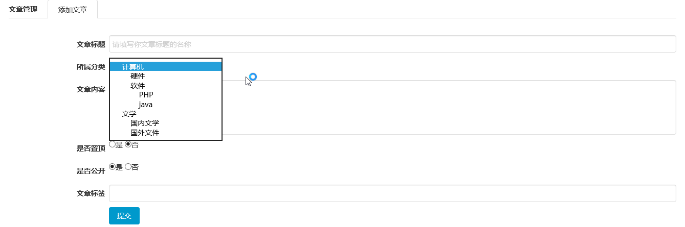 显示添加文章的界面