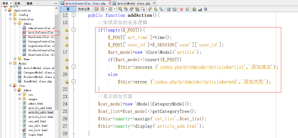 实现添加文章的逻辑