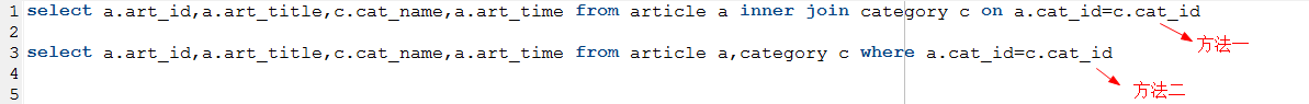 方法二:select * from 表1,表2 where 表1.公共字段=表2.公共字段