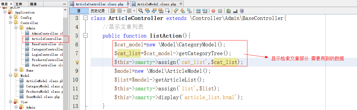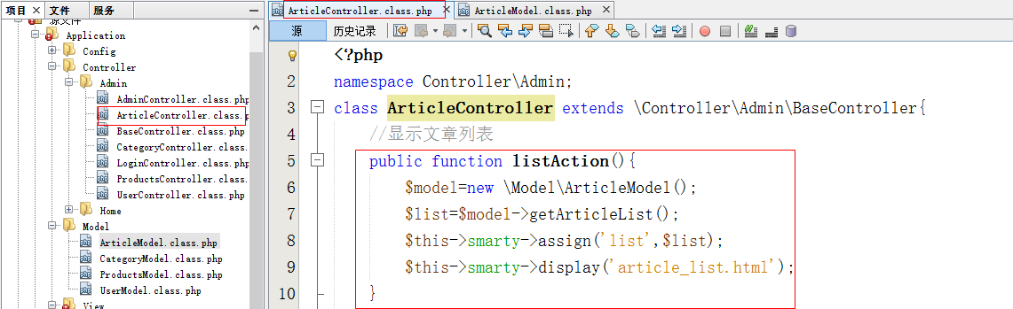 控制器(ArticleController),更改listAction()方法