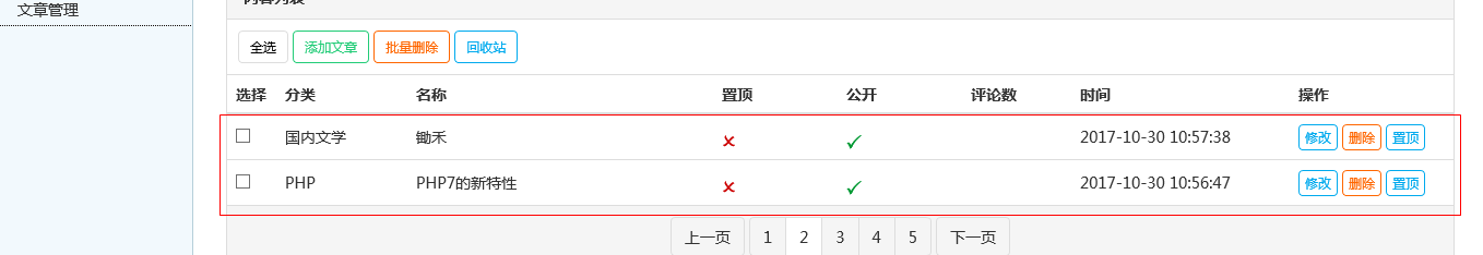 显示文章列表