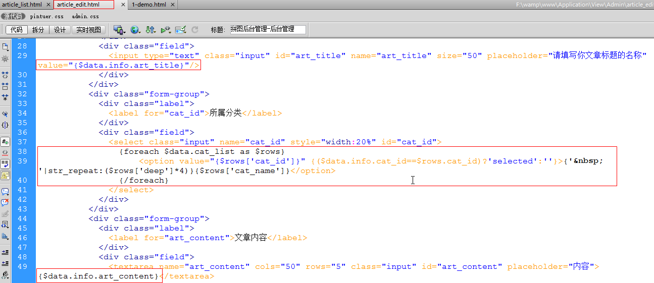 视图(article_edit.html):将article_add.html复制一份改名为article_edit.html