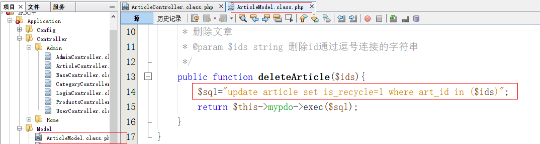 将文章的is_recycle字段的值变成1。