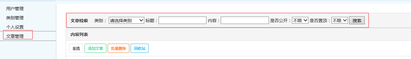 完成“回收站”功能,打开回收站,可以将回收站的文章删除和恢复。