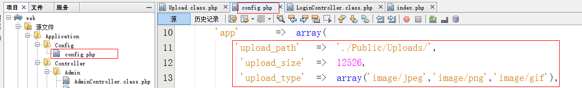 - 在config.php配置中,配置文件上传的信息
