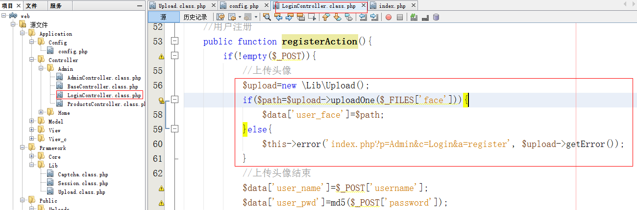 - 在Lib文件夹下创建Upload.class.php页面