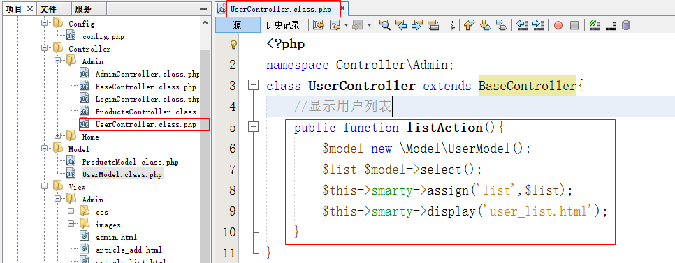 - 在Controller\Admin文件夹下创建UserController.class.php页面