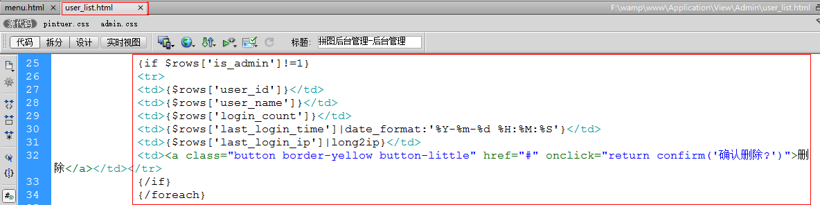 - 在View/Admin目录下的user_list.html中循环取出普通用户