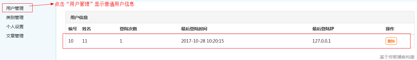 管理员登录后显示用户列表