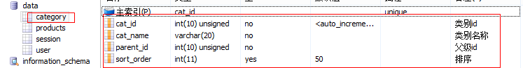 cat_id int unsigned auto_increment primary key comment ‘类别id’,