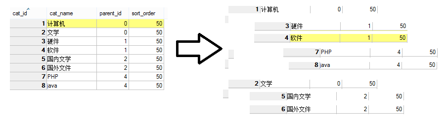 $rs=mysql_query(‘select * from category order by sort_order,cat_id’);