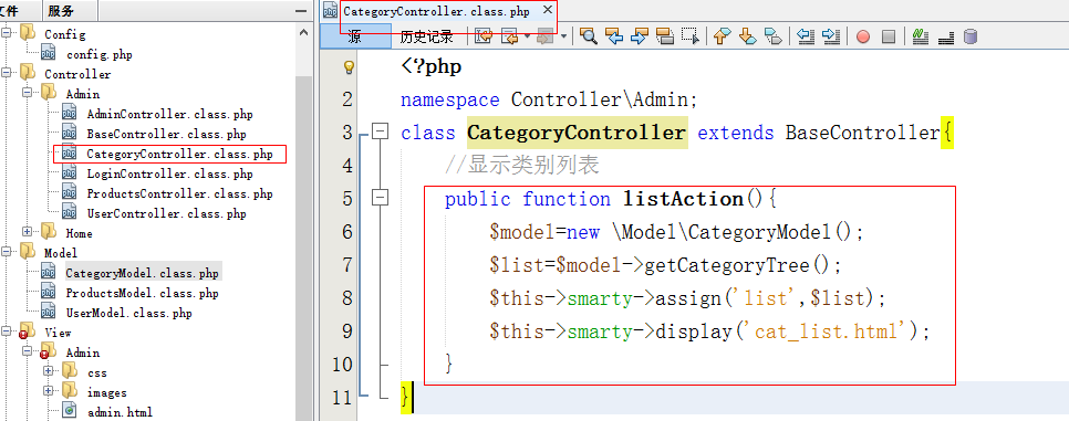 - 在Controller\Admin目录下创建CategoryController.class.php页面