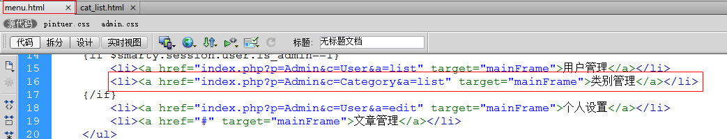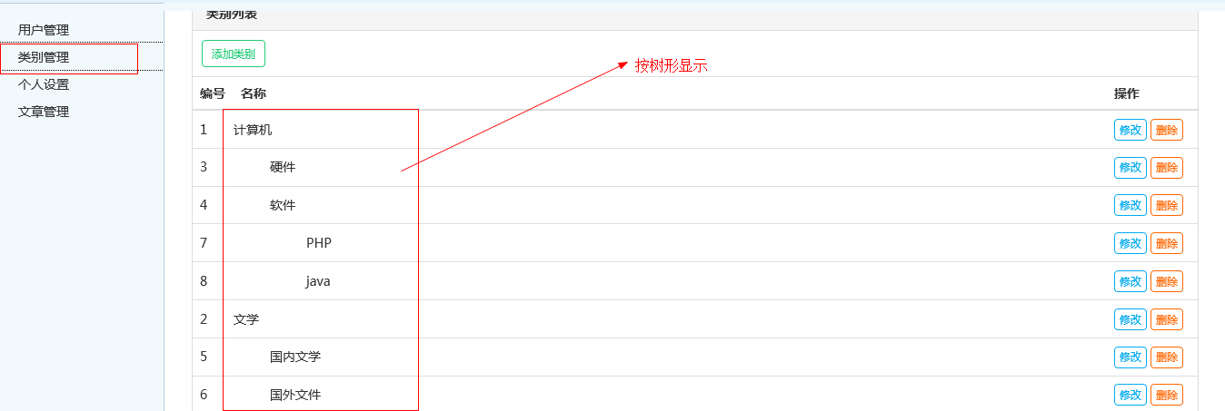 - 在menu.html页面中点击“类别管理”