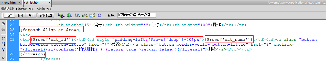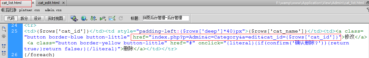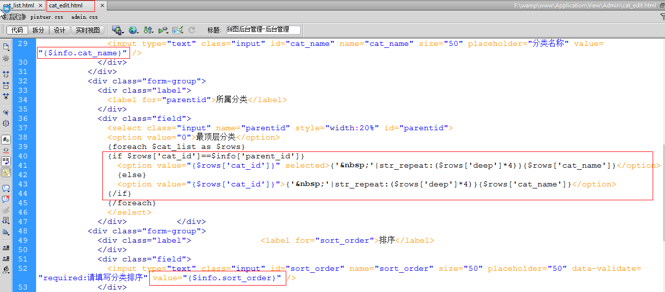 视图(将cat_add.html页面复制一份,改名为cat_edit.html)