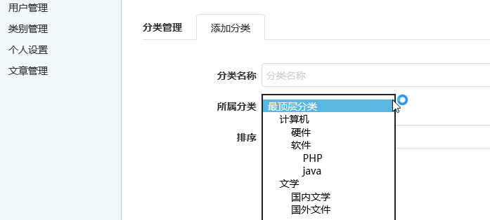 博客中显示类别列表