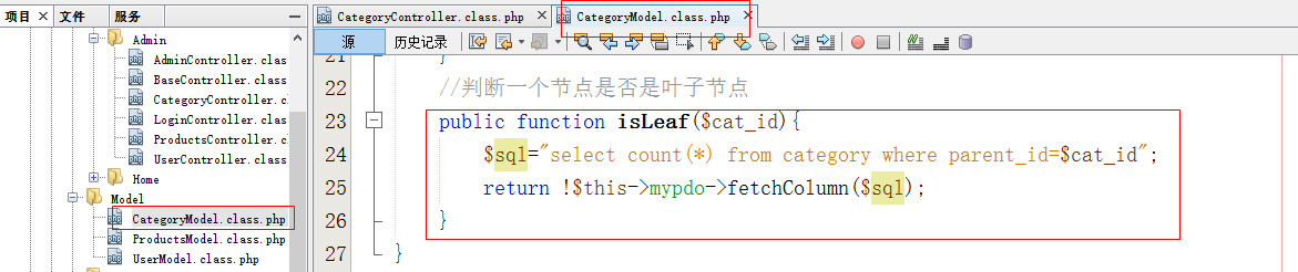 - 在Model文件夹中创建CategoryModel.class.php页面