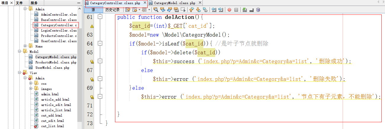 $this->error (‘index.php?p=Admin&c=Category&a=edit&cat_id=’.$cat_id, ‘自己不能做自己的父亲’);