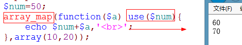 - use():将变量引入到匿名函数内部使用。