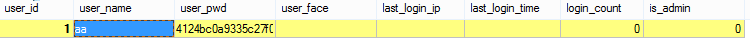 insert into `user` (user_id,user_name,user_pwd) values (1,’aa’,md5(‘aa’));