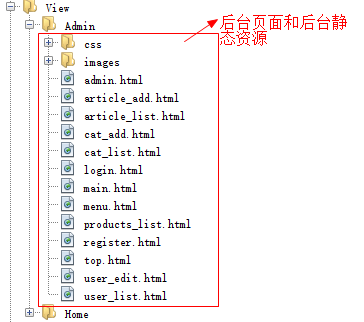- 将后台的模板和后台的静态资源拷贝到View\Admin目录中