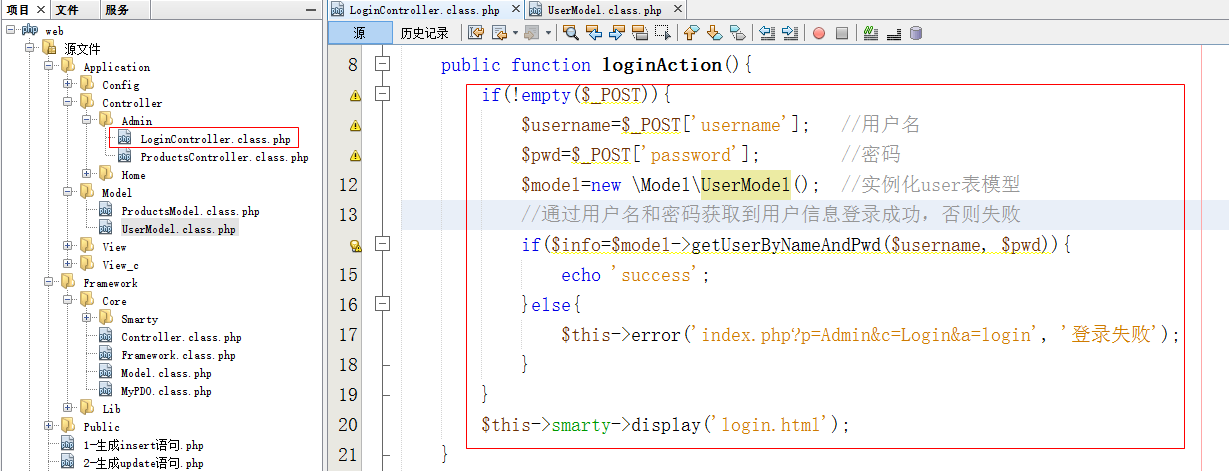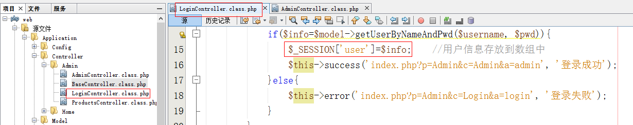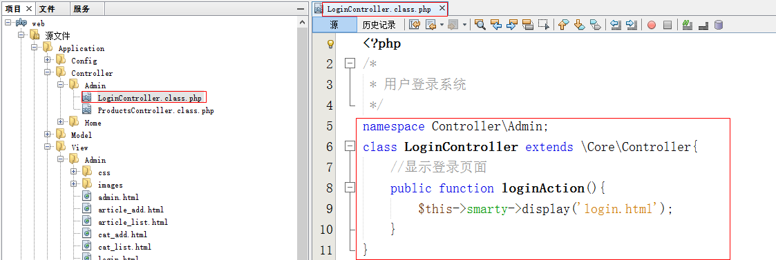 - 在Controller\Admin目录下创建LoginController.class.php页面(登录控制器)