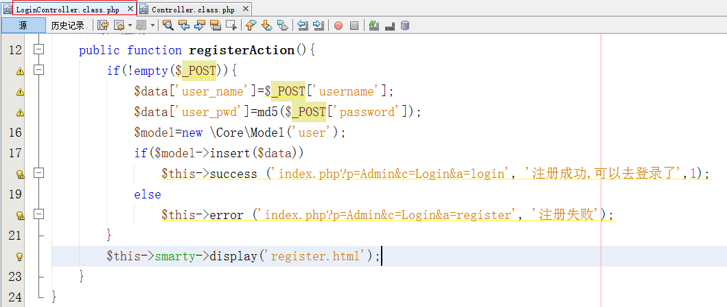 - 在LoginController类中添加用户注册的方法