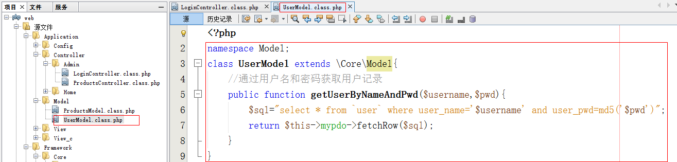 模型(UserModel)类中