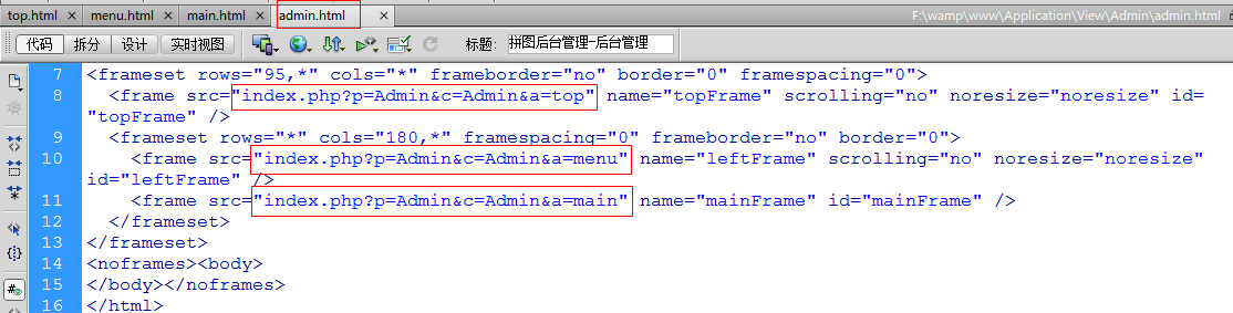 - 更改top.html,menu.html,main.html中的静态资源的路径