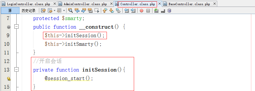 - 由于前后台都要使用会话,所以开启会话放在基础控制器中