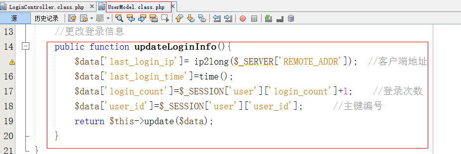 在控制器中调用updateLoginInfo()