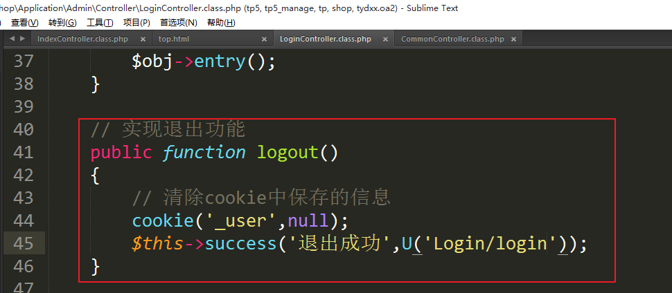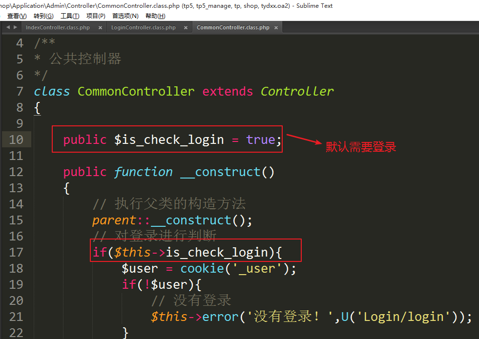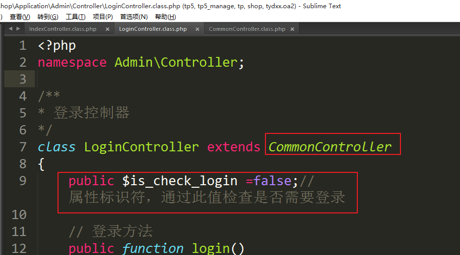 可能common控制器中有很多公共方法,对于登录有可能会使用到。需要修改login继承common控制器。但是直接继承会出现故障