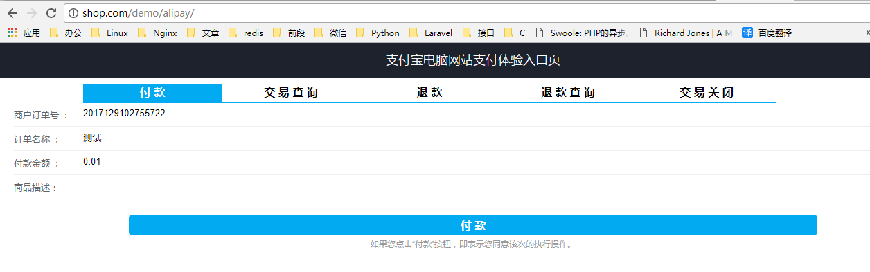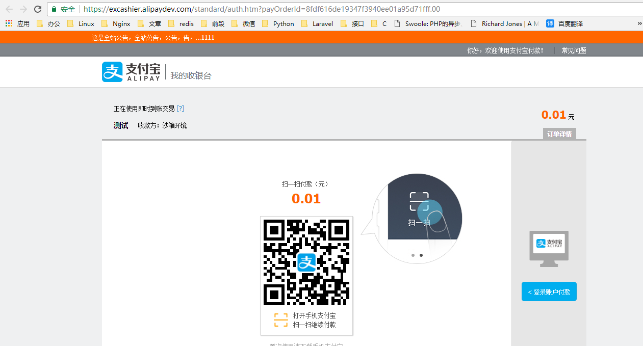 接入测试支付