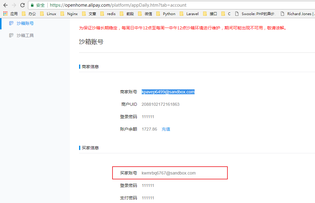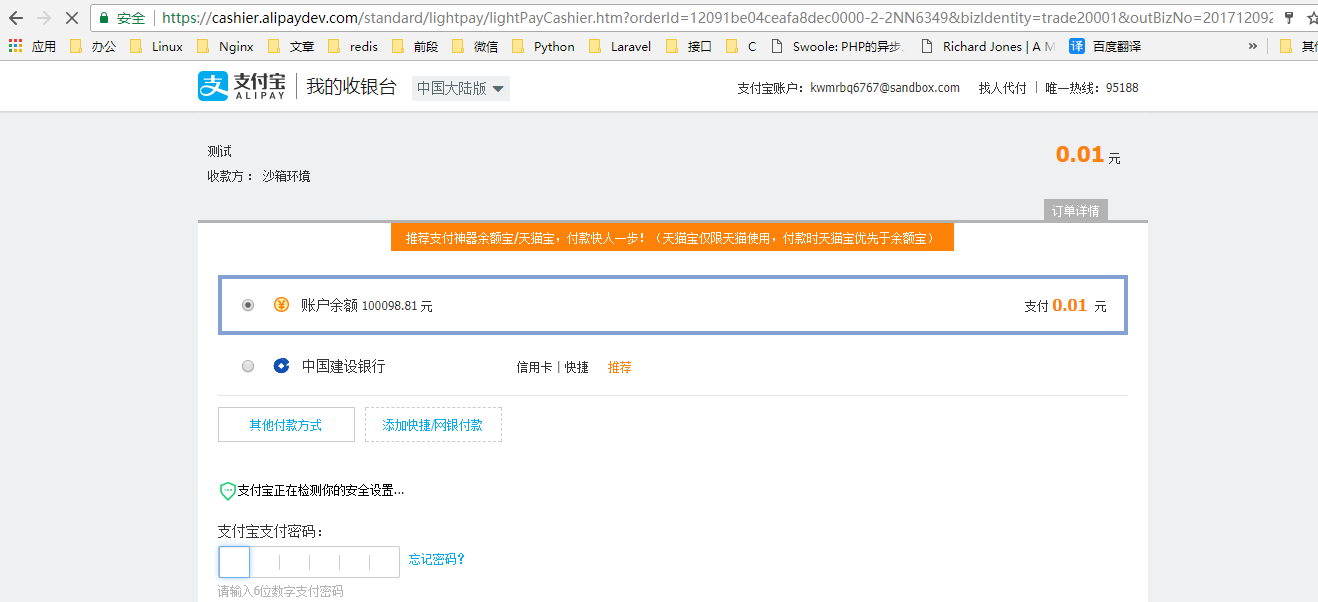 由于付款需要使用账户 正常的个人账户不可以使用需要使用测试账户