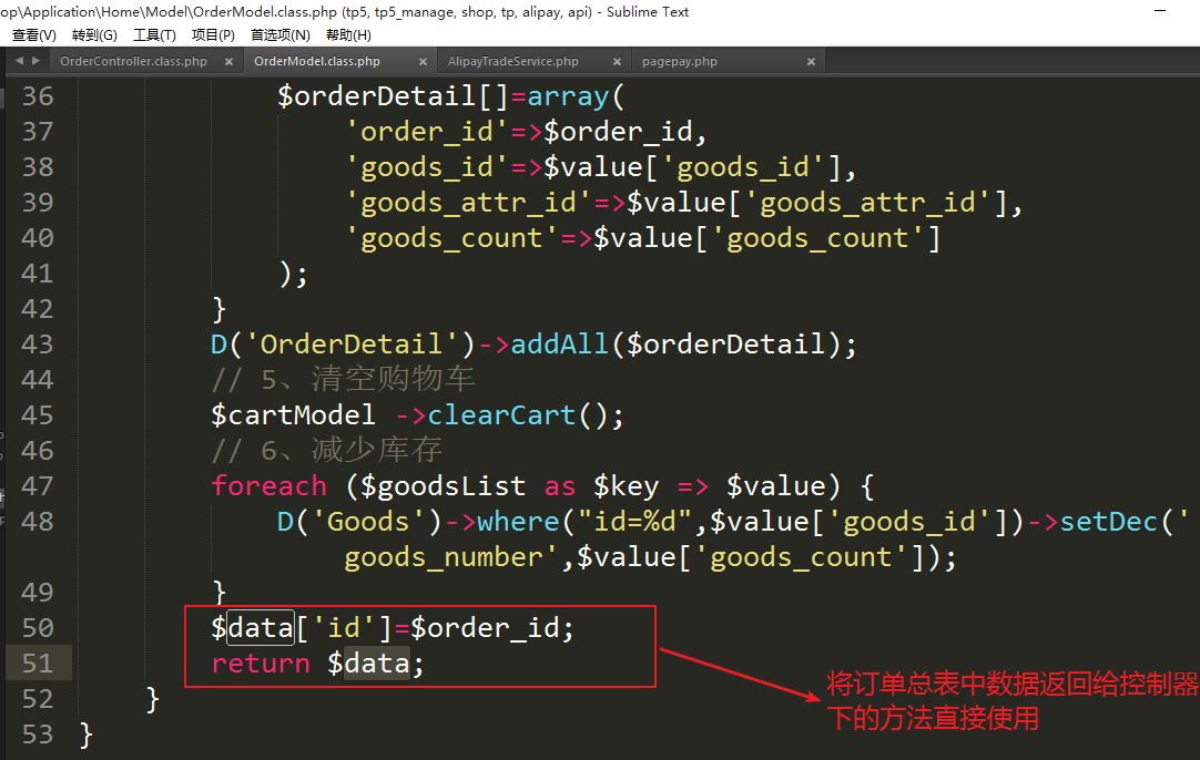②修改订单入库的返回数据代码