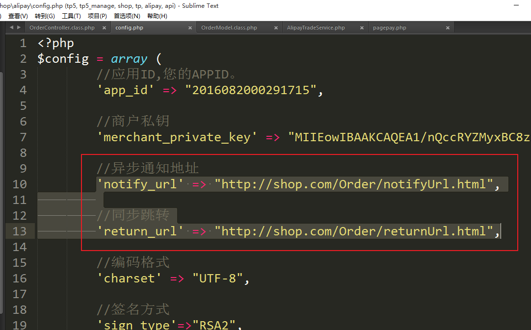 ①将测试的支付宝代码拷贝到项目中