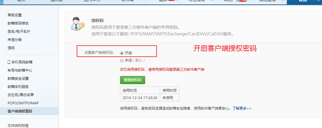 此密码跟登录密码劲量不要设置为一致。此密码时给第三方使用。当第三方需要使用该邮箱发送邮件需要进行密码校验。密码校验使用第三方授权密码