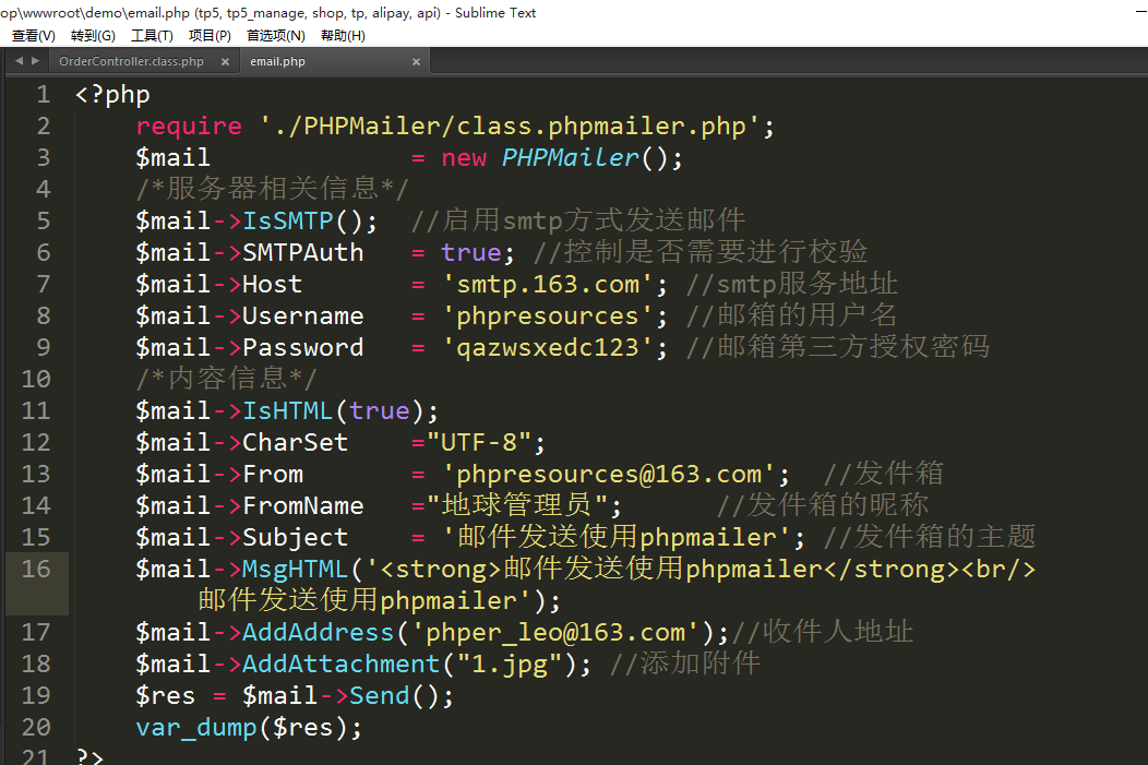 使用PHPmailer实现邮箱发送